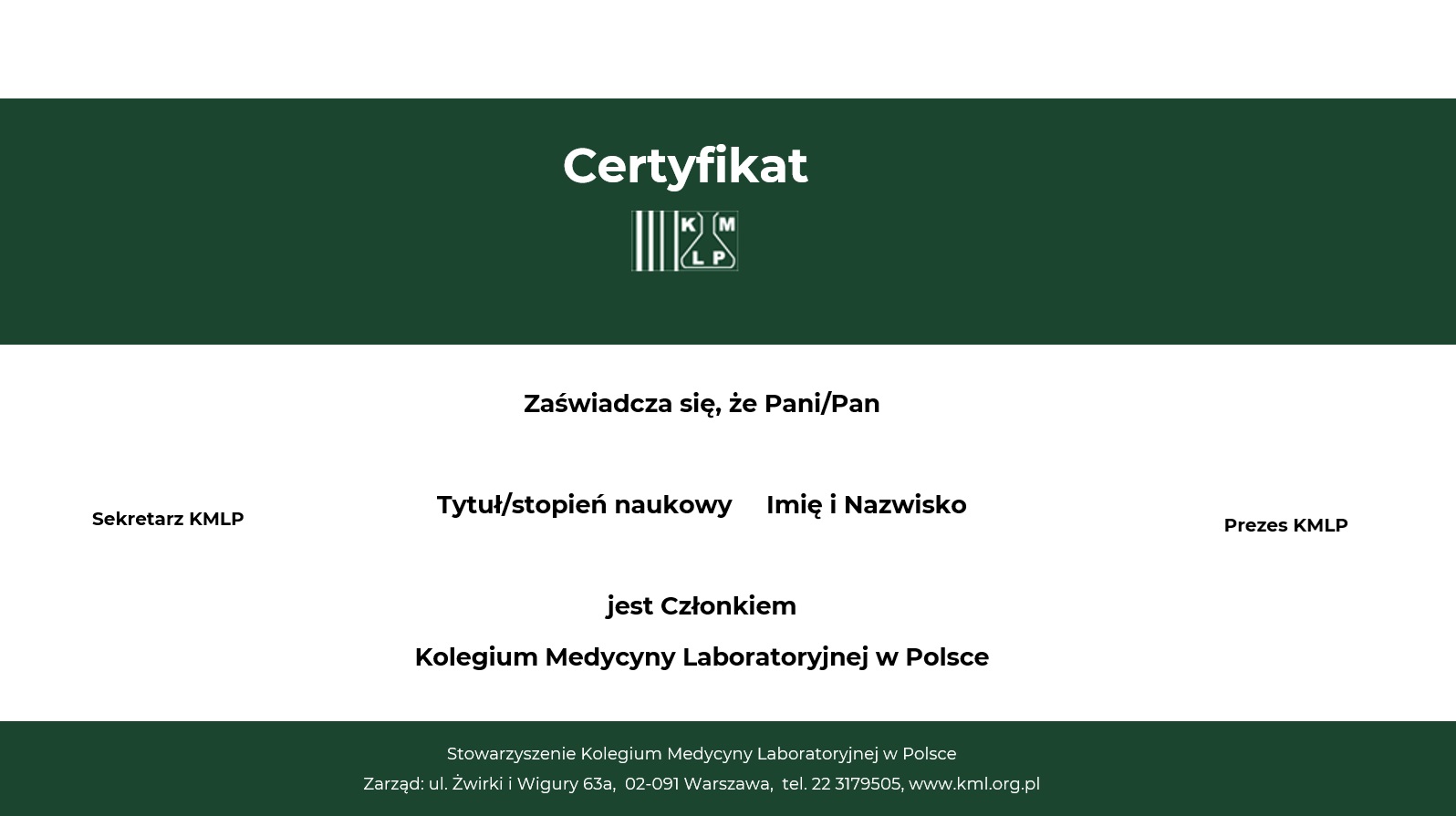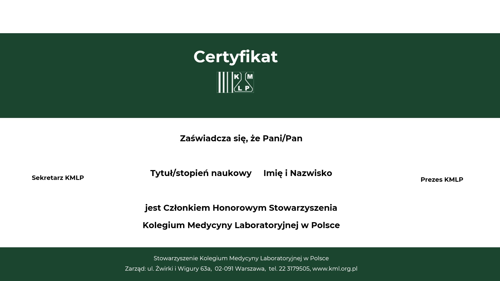 - Posiada znaczący dorobek naukowy w zakresie medycyny laboratoryjnej i przedłoży jego dokumentację do oceny Zarządowi Kolegium wraz z pisemną deklaracją i pisemną opinią dwóch członków wprowadzających